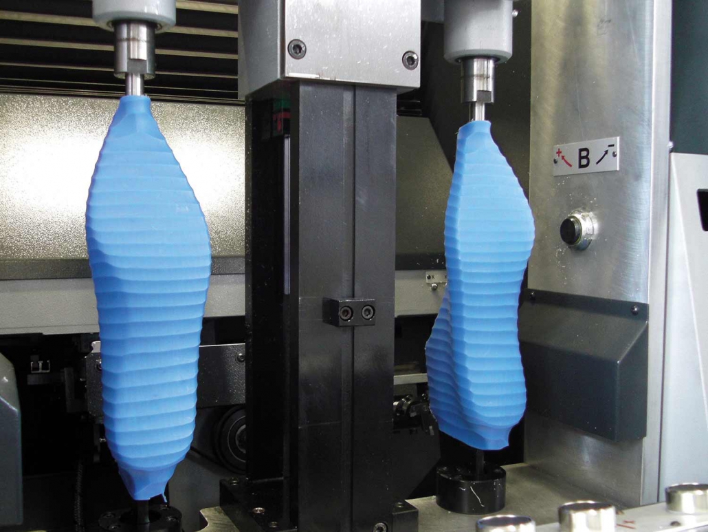 SDFC è una fresatrice a 4 assi interpolati, progettata per la lavorazione di un paio di forme durante un unico ciclo di lavoro. Due mandrini con fresa a disegno Newlast eseguono automaticamente la lavorazione sulla cresta delle due forme, destra e sinistra, realizzando la presa a “coda di rondine” che consente il fissaggio e il bloccaggio automatico degli sgrossati sulle finitrici SDF. Grazie alle elevate prestazioni del controllo numerico, l’elaborazione dei riferimenti di lavorazione inclusi nel file .FRV™ è istantanea. Per una corretta ottimizzazione del ciclo di lavoro, ogni SDFC può essere utilizzata insieme a massimo 3 macchine SDF4HS oppure 2 macchine SDF6HS.